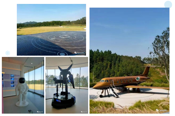 体会过新会的陈皮文化,一行人继续来到了素有大湾区“小云南”之称的广东省航空科普教育基地--泉林黄金小镇,感受时代科技发展的力量。